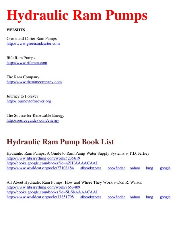 Hydraulic Ram Pump Links Book List And Much More
